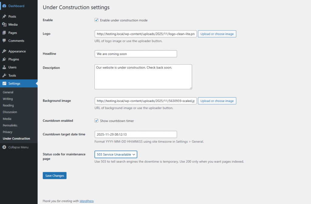 This plugin displays a fully customizable “Under Construction” page for all logged-out visitors. Logged-in users can continue working normally on the site.Perfect for developers, designers, agencies, or anyone building a website. Can be used as maintainance mode plugin for wordpress websites.